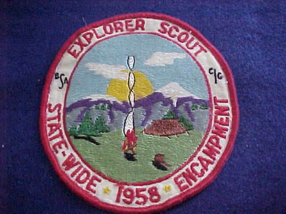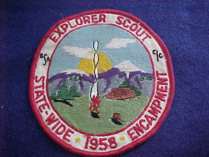 1958 PATCH, CENTRAL INDIANA C., EXPLORER, STATE-WIDE ENCAMPMENT, 5" ROUND, USED