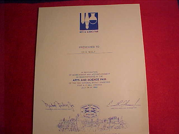 1985 NJ CERTIFICATE OF RECOGNITION, ARTS & SCIENCE FAIR