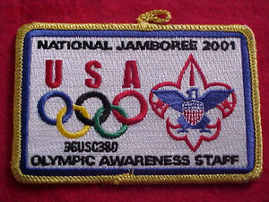 2001 NJ PATCH, OLYMPIC AWARENESS STAFF, GOLD MYLAR BDR.