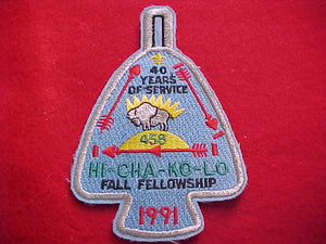 458 eA1991 HI-CHA-KO-LO, 1991 FALL FELLOWSHIP, 40 YEARS OF SERVICE