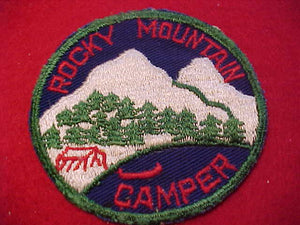 ROCKY MOUNTAIN CAMPER, 1950'S, MINT FRONT, GLUE MARKS ON BACK